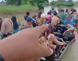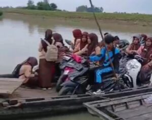 Kabarindo24jam.com | Lampung Timur — Warga Desa Kali Pasir, Kecamatan Way Bungur, Kabupaten Lampung Timur, hingga kini masih harus menyeberangi Sungai Kali Pasir tanpa jembatan permanen. Kondisi ini kembali menjadi sorotan setelah beredar video yang memperlihatkan aktivitas warga melintasi sungai dengan cara manual, meski arus air tampak cukup deras.