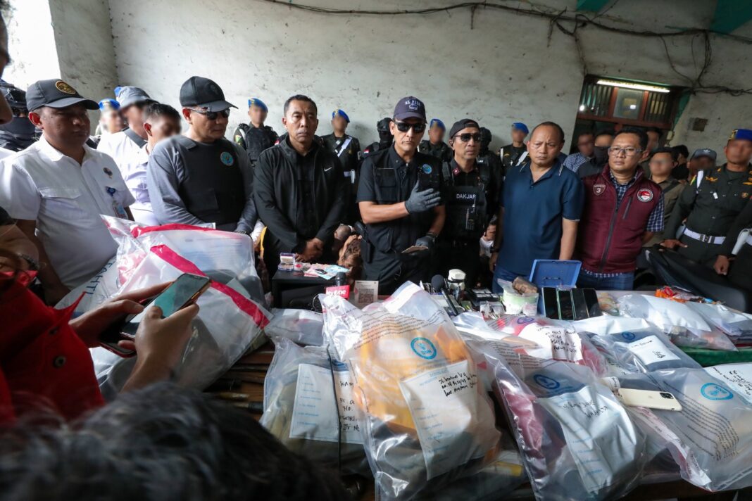 Tim operasi gabungan telah mengamankan sejumlah barang bukti dari lokasi yaitu total 124,39 gram ganja, 62,77 gram sabu. Selain itu, ada barang yang disita seperti mesin penghitung uang, 2 buah brankas, 3 unit timbangan digital, uang senilai Rp8.230.000, perhiasan, handphone 31 unit, CCTV 13 unit, 3 buah senapan angin, dan 13 buah senjata tajam.