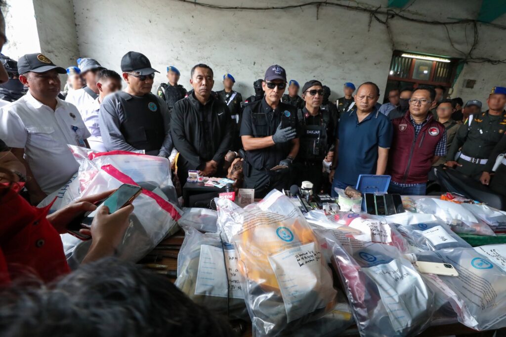 Tim operasi gabungan telah mengamankan sejumlah barang bukti dari lokasi yaitu total 124,39 gram ganja, 62,77 gram sabu. Selain itu, ada barang yang disita seperti mesin penghitung uang, 2 buah brankas, 3 unit timbangan digital, uang senilai Rp8.230.000, perhiasan, handphone 31 unit, CCTV 13 unit, 3 buah senapan angin, dan 13 buah senjata tajam.