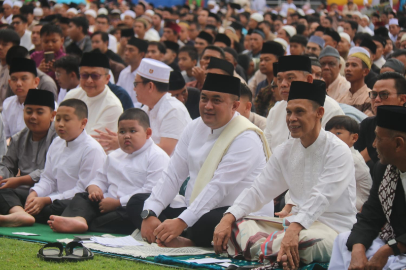 puluhan ribu masyarakat Kabupaten Bogor memadati Stadion Pakansari untuk melaksanakan shalat Idulfitri 1447 hijriah bersama Bupati Rudy Susmanto bersama jajaran Forum Komunikasi Pimpinan Daerah (Forkopimda).