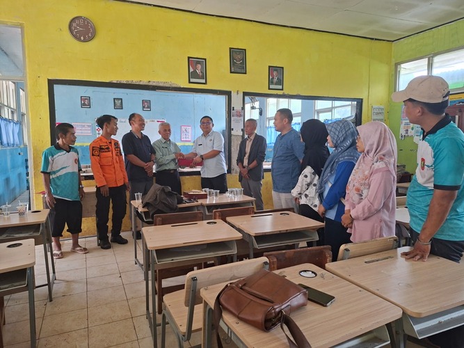 Kunjungan tersebut dilakukan untuk melihat secara langsung kondisi bangunan sekolah sekaligus menyusun langkah penanganan terhadap dampak kerusakan fisik pada satuan pendidikan tersebut.
