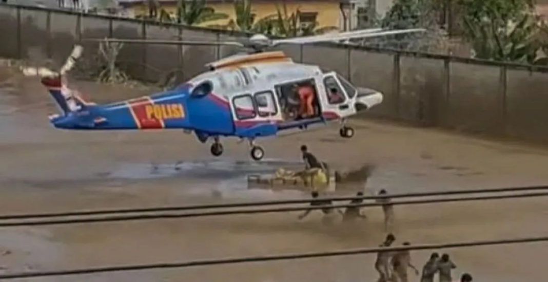 Kabarindo24jam.com | Aceh Tamiang – Akses darat menuju sejumlah titik banjir di Aceh Tamiang masih terputus sehingga penyaluran bantuan terpaksa dilakukan melalui jalur udara. Polisi Udara Baharkam Polri mengirim logistik menggunakan helikopter pada Sabtu (6/12/2025), meski kondisi medan dinilai sangat berisiko.