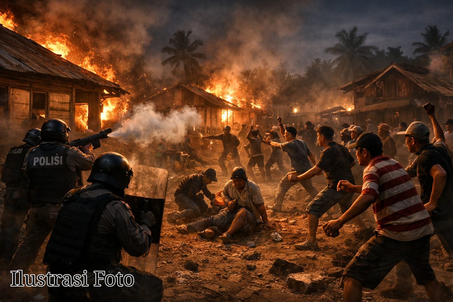 Kabarindo24jam.com | Maluku Tengah – Bentrok antarwarga kembali terjadi di Kecamatan Leihitu, Kabupaten Maluku Tengah, Maluku, pada Jumat dini hari (6/2/2026). Insiden yang melibatkan warga Negeri Morella dan Negeri Hitu itu mengakibatkan kerusakan rumah serta korban luka dari warga sipil dan aparat kepolisian.