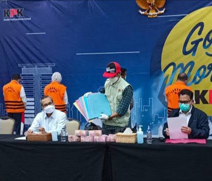 Sedangkan sebagai penerima HA, PTS, DK dan MR disangkakan melanggar Pasal 12 huruf a atau Pasal 12 huruf b atau Pasal 11 Undang-Undang Nomor 31 Tahun 1999 tentang Pemberantasan Tindak Pidana Korupsi sebagaimana telah diubah dengan Undang-Undang Nomor 20 Tahun 2001 tentang Perubahan Atas Undang-Undang Nomor 31 Tahun 1999 tentang Pemberantasan Tindak Pidana Korupsi Jo Pasal 55 ayat 1 ke 1 KUHP.