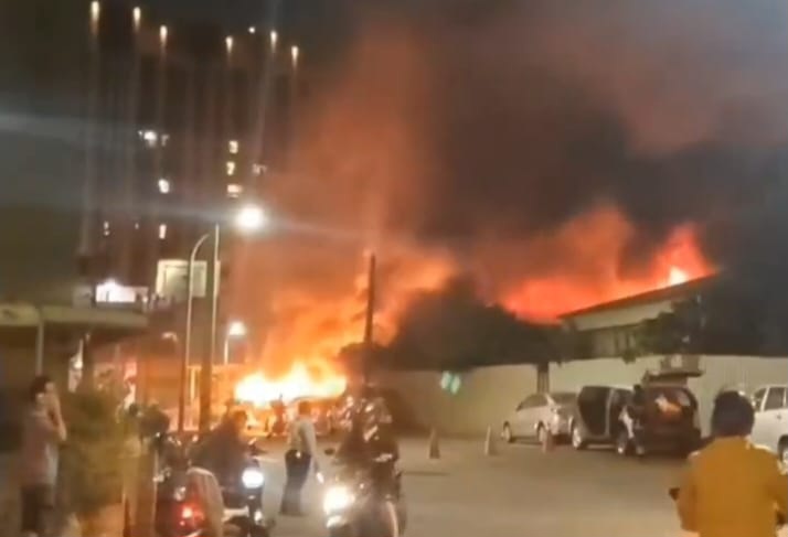 Laporan media sosial dan unggahan video daring yang beredar menunjukkan kobaran api besar, tetapi informasi faktual lebih lanjut masih menunggu pernyataan resmi instansi terkait.