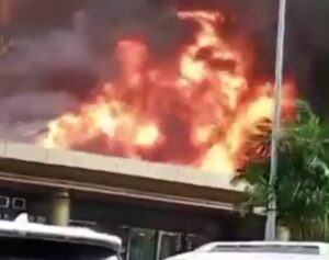 Api pertama kali muncul di bagian kanopi depan mal dan menyebabkan asap hitam pekat membumbung ke udara, yang sempat terlihat dari luar bangunan.