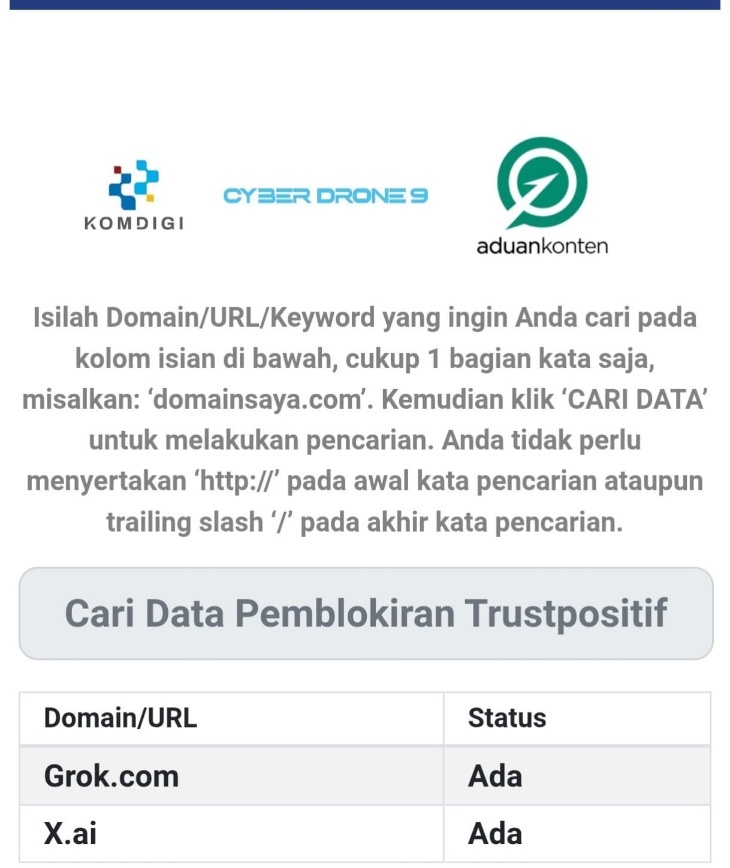 Kabarindo24jam. Com | Jakarta – Kementerian Komunikasi dan Digital (Komdigi) telah membatasi akses layanan kecerdasan buatan Grok dan X.ai melalui sistem Trust Positif.