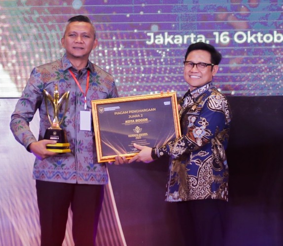 Penghargaan tersebut diterima langsung oleh Wakil Wali Kota Bogor, Jenal Mutaqin, dari Menteri Koordinator Bidang Pemberdayaan Masyarakat (Menko PM) Muhaimin Iskandar di Ballroom Plaza Jamsostek, Jakarta, Kamis (16/10/2025). Dalam ajang ini, Kota Bogor sukses menempati peringkat kedua kategori kota.