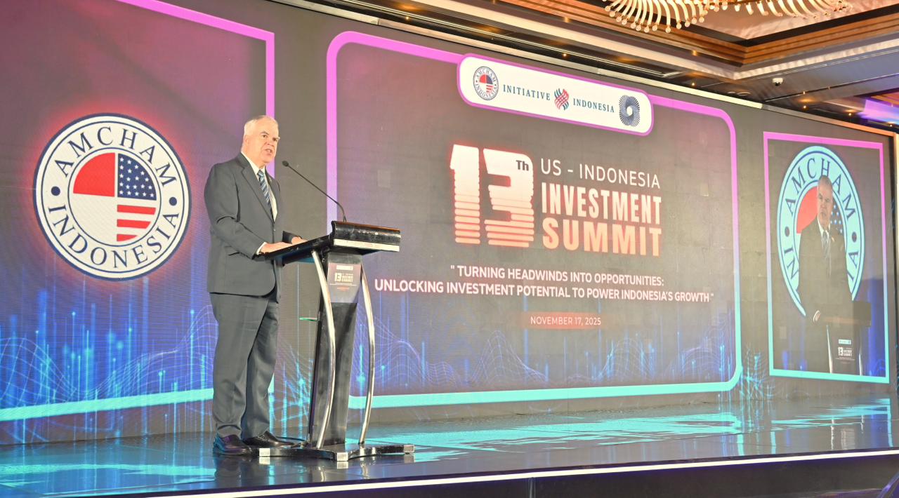 Kabarindo24jam.com | Jakarta – Kuasa Usaha Ad Interim (KUAI) Kedutaan Besar AS di Jakarta, Peter Haymond, menyampaikan pidato pembukaan pada kegiatan tahunan KTT Investasi ke-13 (_13th Annual U.S.-Indonesia Investment Summit_) yang diselenggarakan bersama oleh AmCham dan Kamar Dagang AS pada 17 November.