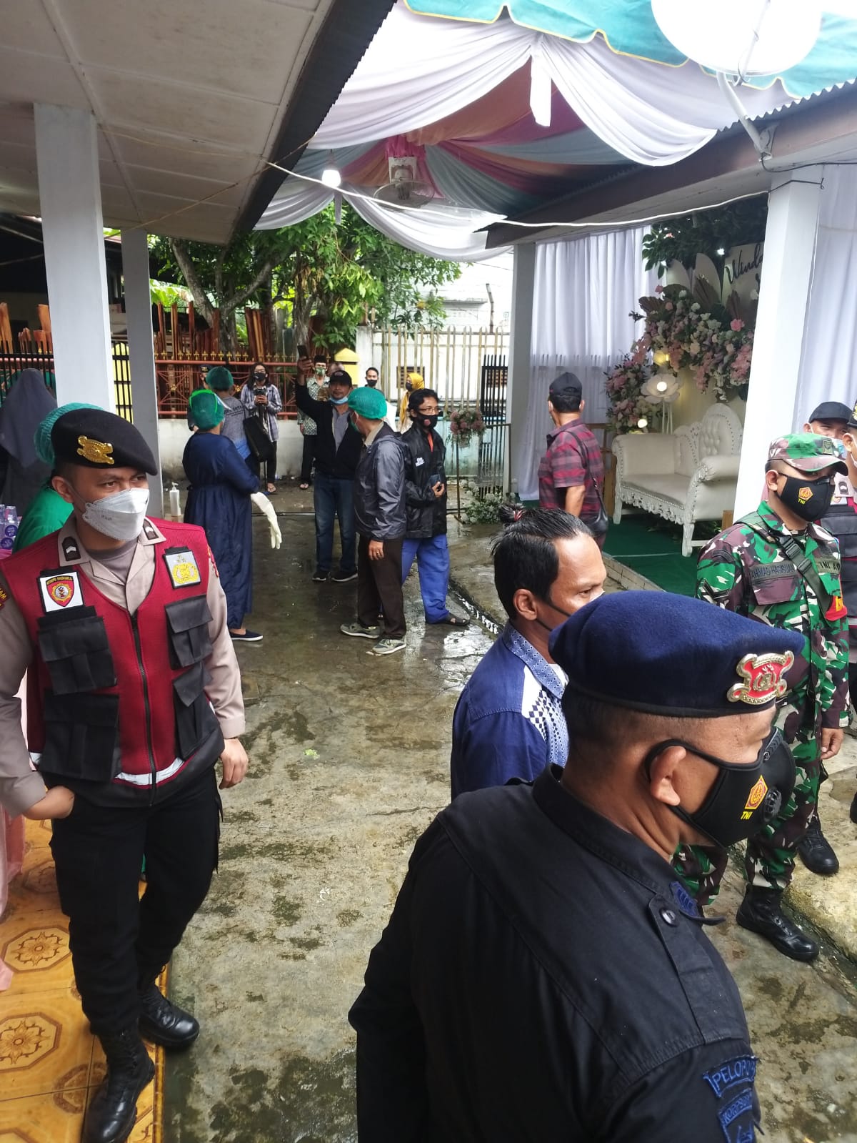 MEDAN — Aparat Polsek Patumbak bersama personil Satgas Covid-19 terpaksa membubarkan pesta pernikahan warga di Jalan Selamat Ujung, Gang Sederhana, Kelurahan Sitirejo III, Kecamatan Medan Amplas, Sabtu (4/9/2021).