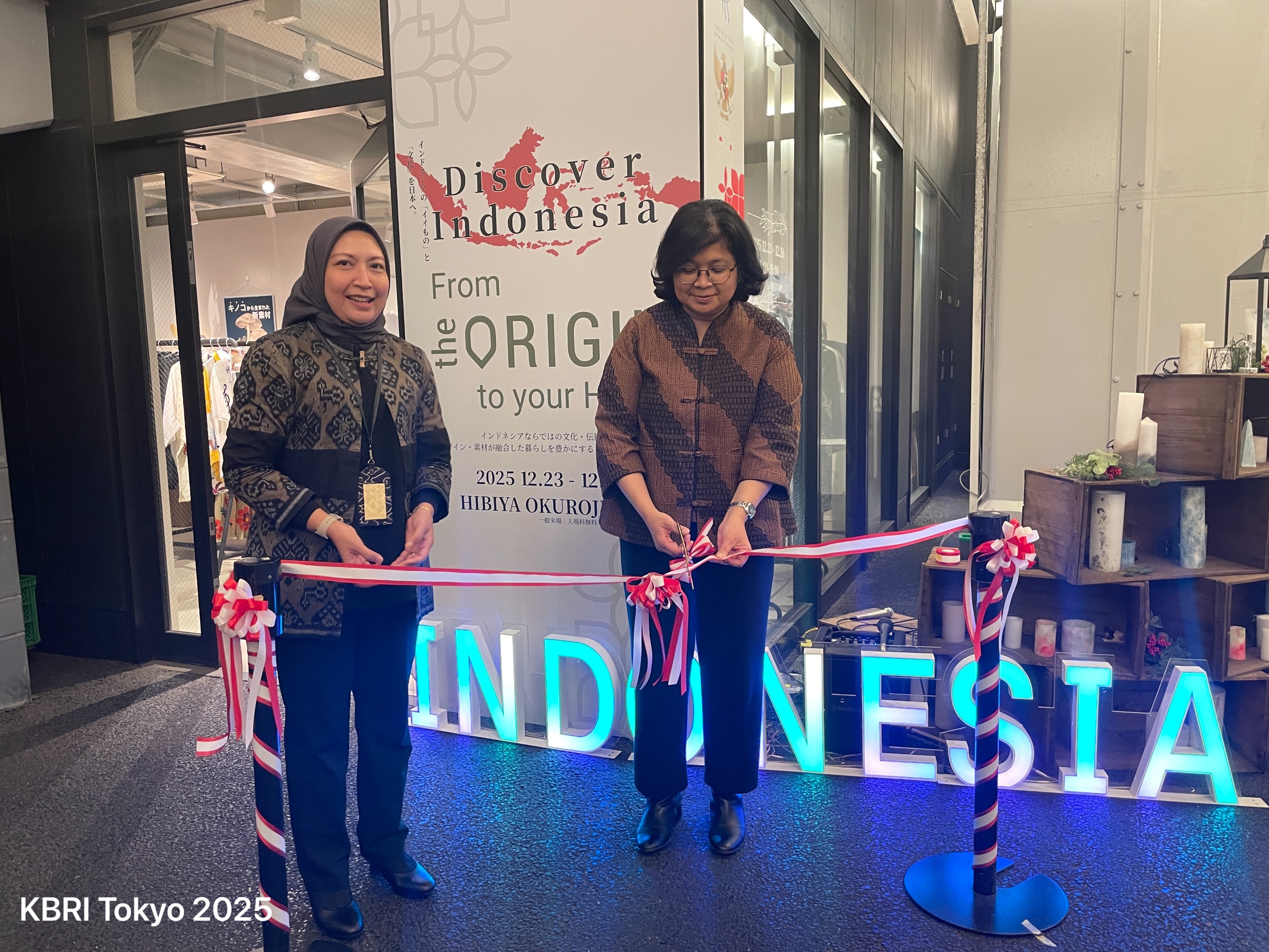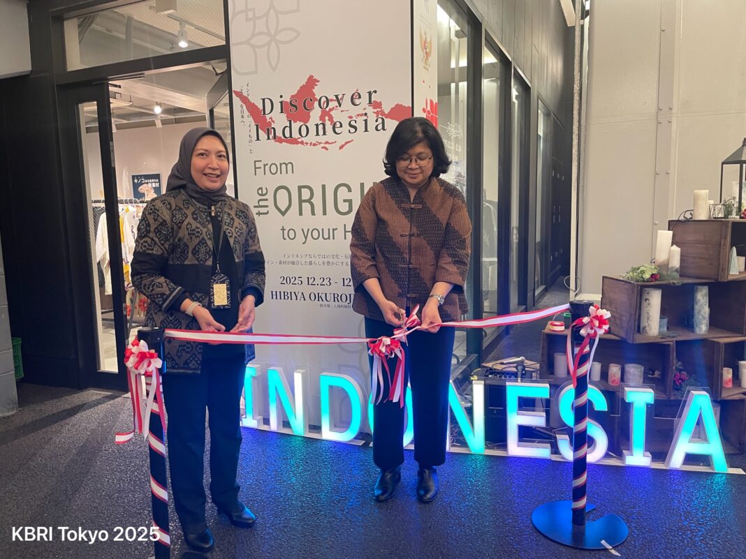 Kabarindo24jam.com | Tokyo – Jelang akhir 2025, KBRI Tokyo menggelar promosi produk kreatif dan manufaktur Indonesia di Pasar Jepang Popup Store Discover Indonesia di Hibiya Tokyo, pada 22 – 26 Desember 2025. Kegiatan yang digelar bekerja sama dengan Kementerian Perdagangan (Kemendag) RI ini dibuka secara resmi oleh Kuasa Usaha Ad Interim KBRI Tokyo Maria Renata Hutagalung dengan didampingi Atase Perdagangan KBRI Tokyo Merry Astrid Indriasari.