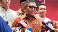 Hasto didampingi oleh sejumlah jajaran fungsionaris partai seperti Johanes Oberlin Tobing dan Guntur Romli.