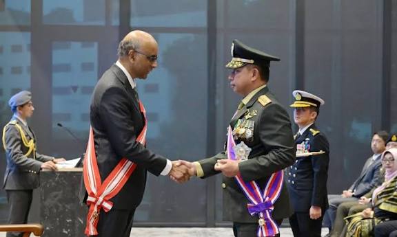 Kabarindo24jam.com | Jakarta – Panglima Tentara Nasional Indonesia (TNI) Jenderal Agus Subiyanto menerima penganugerahan Distinguished Service Order (DSO) dari Presiden Singapura Tharman Shanmugaratnam. Pemberian penghargaan mencerminkan tingginya apresiasi pemerintah Singapura terhadap peran dan komitmen Jenderal Agus dalam mempererat hubungan bilateral bidang pertahanan dan keamanan.
