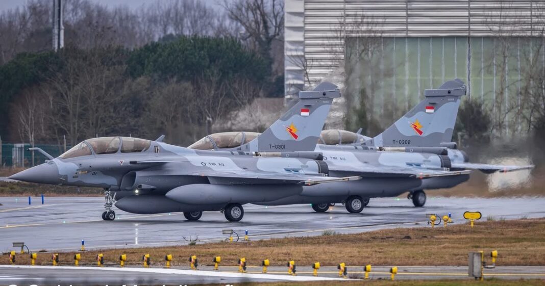 Kabarindo24jam.com | Jakarta -Kementerian Pertahanan Republik Indonesia (Kemenhan RI) menyatakan bahwa tiga unit pertama jet tempur Rafale pesanan Indonesia telah berada di tanah air. Ketiga pesawat tempur buatan Dassault Aviation Prancis itu kini berada di Pangkalan TNI Angkatan Udara (Lanud) Roesmin Nurjadin, Pekanbaru, Riau.