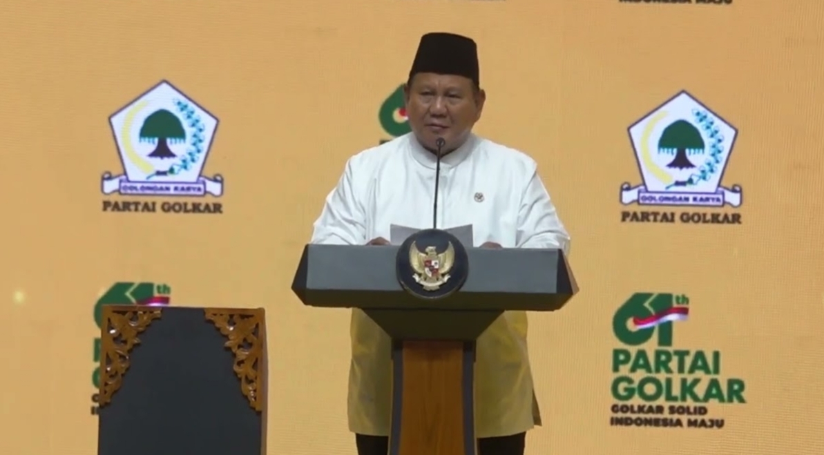 Presiden juga memberi apresiasi kepada kader Golkar dan pihak yang mendukung kebijakan pemerintah. Ia menegaskan pemerintah akan tetap bersikap tegas bila situasi menuntut, termasuk terhadap pihak sendiri. “Mungkin suatu saat kita harus bertindak tegas, dan mungkin yang kena adalah kawan-kawan kita. Tapi sebagai mandataris rakyat, saya dan tim hanya melihat satu hal: apakah kebijakannya menguntungkan rakyat atau tidak,” tegas Presiden.