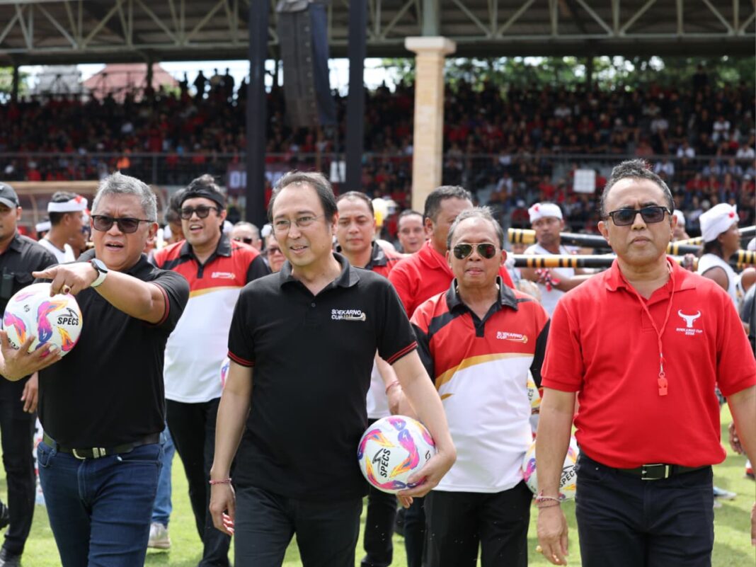 Saat pembukaan, M. Prananda Prabowo didampingi Sekjen PDIP Hasto Kristiyanto, Ketua DPD PDIP Bali Wayan Koster, serta para ketua DPD dari daerah peserta dan Ketua Panitia Soekarno Cup 2025 I Made Agus Mahayastra.