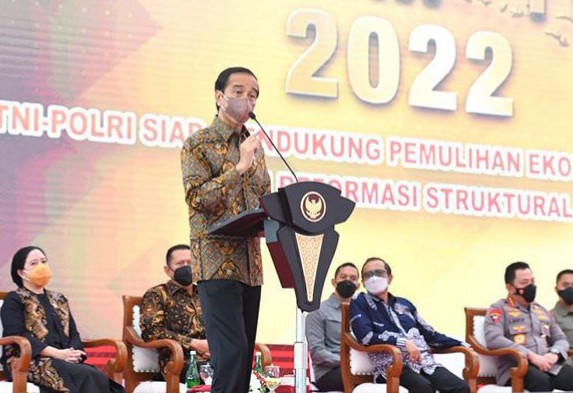 Hal ini dikatakan Jokowi saat memberikan sambutan di acara pembukaan rapat pimpinan (rapim) TNI-Polri 2022, di Mabes TNI, Cilangkap, Jakarta Timur (Jaktim), Selasa (1/3/2022). “Hati-hati ibu-ibu kita juga sama, kedisiplinnya harus sama,” ucap Presiden.