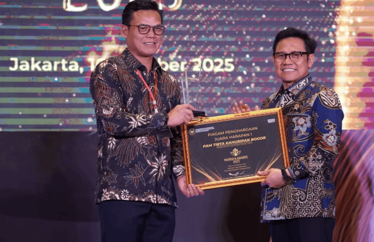 Kabarindo24jam.com | Cibinong – Komitmen Perumda Air Minum Tirta Kahuripan Kabupaten Bogor dalam memberdayakan masyarakat melalui akses air bersih berbuah manis. Lembaga ini berhasil meraih Mandaya Award 2025, penghargaan nasional dari Kementerian Koordinator Bidang Pemberdayaan Masyarakat, berkat keberhasilan program tanggung jawab sosial perusahaan (CSR) bertajuk “Setetes Harapan dari Tirta Kahuripan.”