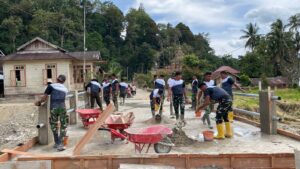 Dengan mengenakan sarung tangan, mereka bahu-membahu merangkai lempengan baja yang menjadi struktur utama jembatan Armco, mencerminkan kuatnya sinergi antara aparat dan masyarakat.