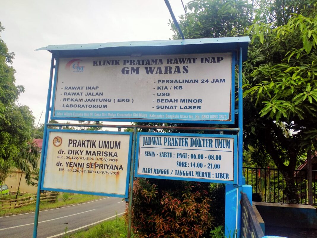 BENGKULU UTARA — Tindakan tim medis Klinik kesehatan GM Waras di desa Giri Mulya Kecamatan Giri Mulya Kabupaten Bengkulu Utara, memunculkan kegaduhan di ruang publik. Pasalnya, klinik ini telah melakukan perawatan terhadap seorang pasien yang terkonfirmasi positif covid 19 dengan gejala berat yang akhirnya meninggal dunia.