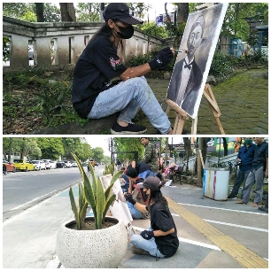 JOMBANG — Peringatan Hari Pers Nasional (HPN) 2022 di Kabupaten Jombang-Jawa Timur, dimeriahkan oleh aksi sejumlah seniman lukis dengan menggelar acara OTS di depan halaman kantor sekretariat PWI Jombang pada Rabu (9/2/2022).