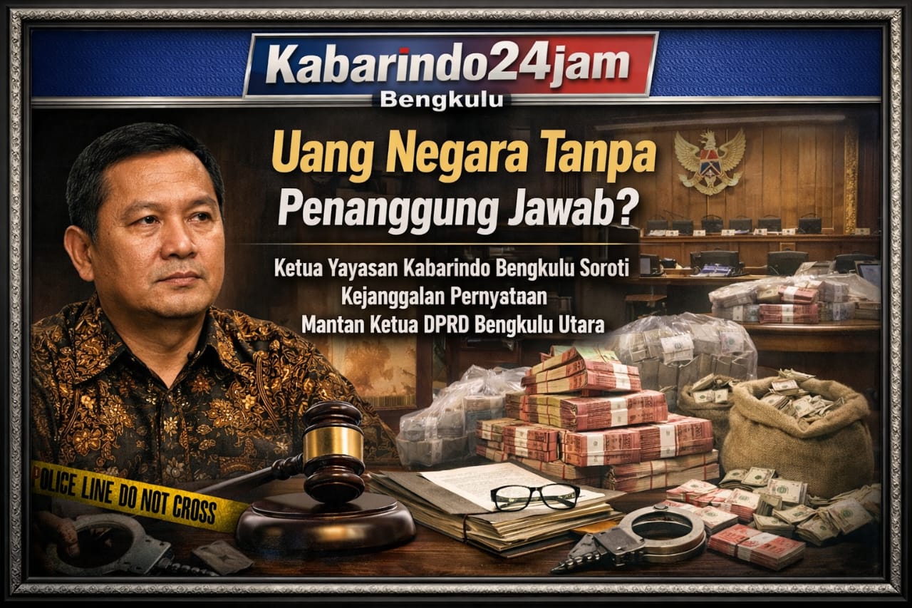 Kabarindo24jam.com | Bengkulu –  Ketua Yayasan Kabarindo Bengkulu, W.H. Setiawan, menilai pernyataan mantan Ketua DPRD Kabupaten Bengkulu Utara, Sonti Bakara, SH., yang mengaku tidak mengetahui keberadaan uang negara bernilai miliaran rupiah, sebagai pernyataan yang janggal dan problematik secara hukum. Menurutnya, dalam sistem keuangan negara, tidak dikenal konsep uang negara keluar dari kas tanpa sepengetahuan dan pengawasan pejabat berwenang.